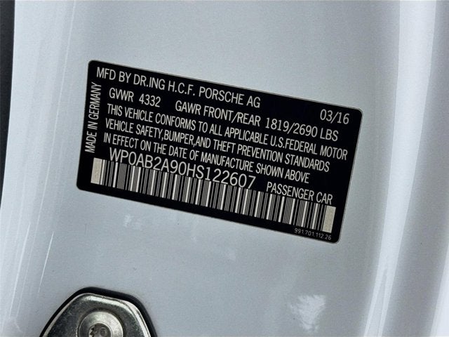 White 2017 Porsche 911 Carrera 4S 3.0L H6 Turbocharged DOHC 24V LEV3-LEV160 420hp