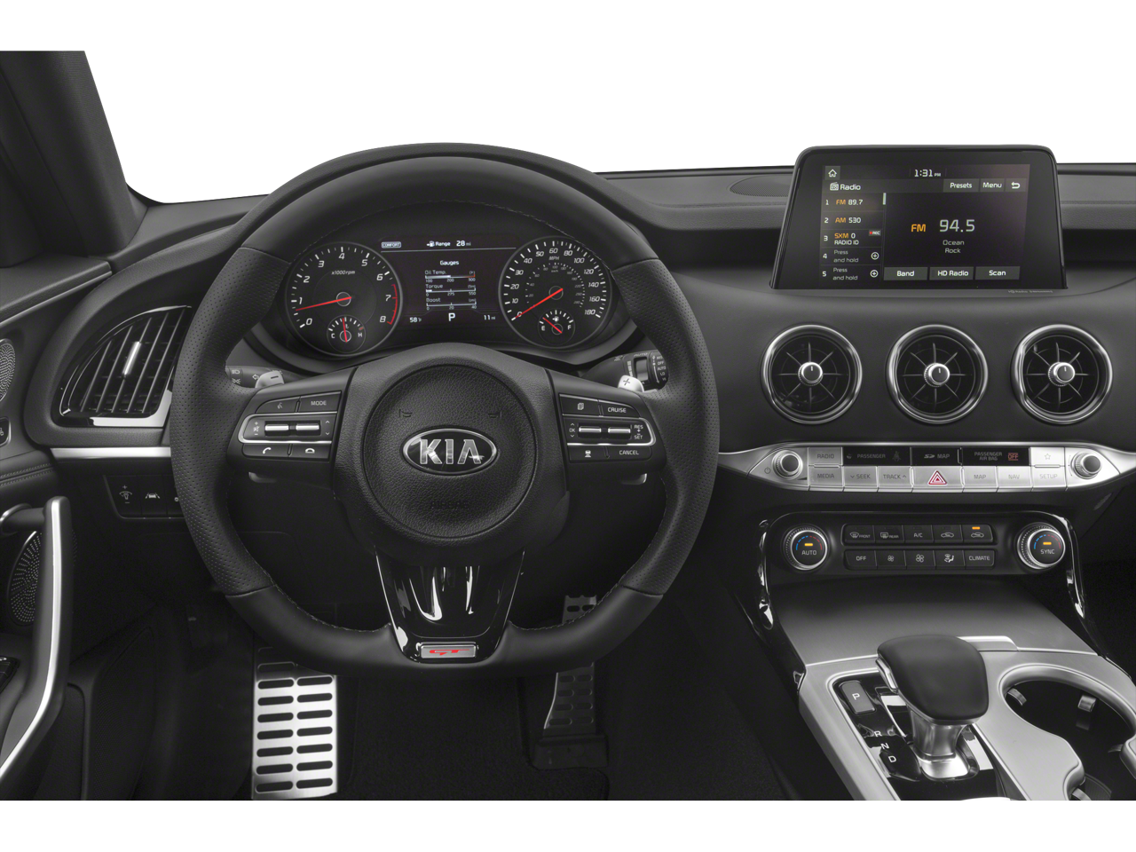 20" GLOSS BLACK Alloy wheels, 4-Wheel Disc Brakes, 9 Speakers, ABS brakes, Air Conditioning, AM/FM radio: SiriusXM, Anti-whiplash front head restraints, Apple CarPlay & Android Auto, Auto-dimming Rear-View mirror, Automatic temperature control, Brake assist, Bumpers: body-color, Delay-off headlights, Driver door bin, Driver vanity mirror, Dual front impact airbags, Dual front side impact airbags, Electronic Stability Control, Emergency communication system: UVO eServices, Exterior Parking Camera Rear, Four wheel independent suspension, Front anti-roll bar, Front Bucket Seats, Front Center Armrest, Front dual zone A/C, Front reading lights, Fully automatic headlights, Heated door mirrors, Heated Front Bucket Seats, Heated front seats, Illuminated entry, Knee airbag, Leather Seat Trim, Low tire pressure warning, Occupant sensing airbag, Outside temperature display, Overhead airbag, Overhead console, Panic alarm, Passenger door bin, Passenger vanity mirror, Power door mirrors, Power driver seat, Power passenger seat, Power steering, Power windows, Radio: AM/FM/MP3/HD/SiriusXM Audio System, Rear air conditioning, Rear anti-roll bar, Rear Bumper Applique, Rear reading lights, Rear seat center armrest, Rear window defroster, Red Interior Color Package, Red Leather Seat Trim, Remote keyless entry, Security system, Speed control, Speed-sensing steering, Speed-Sensitive Wipers, Split folding rear seat, Sport steering wheel, Steering wheel mounted audio controls, Tachometer, Telescoping steering wheel, Tilt steering wheel, Traction control, Trip computer, Turn signal indicator mirrors, Variably intermittent wipers, Wheel Locks, Wheels: 19" x 8.0 Front & 19" x 8.5 Rear Alloy.