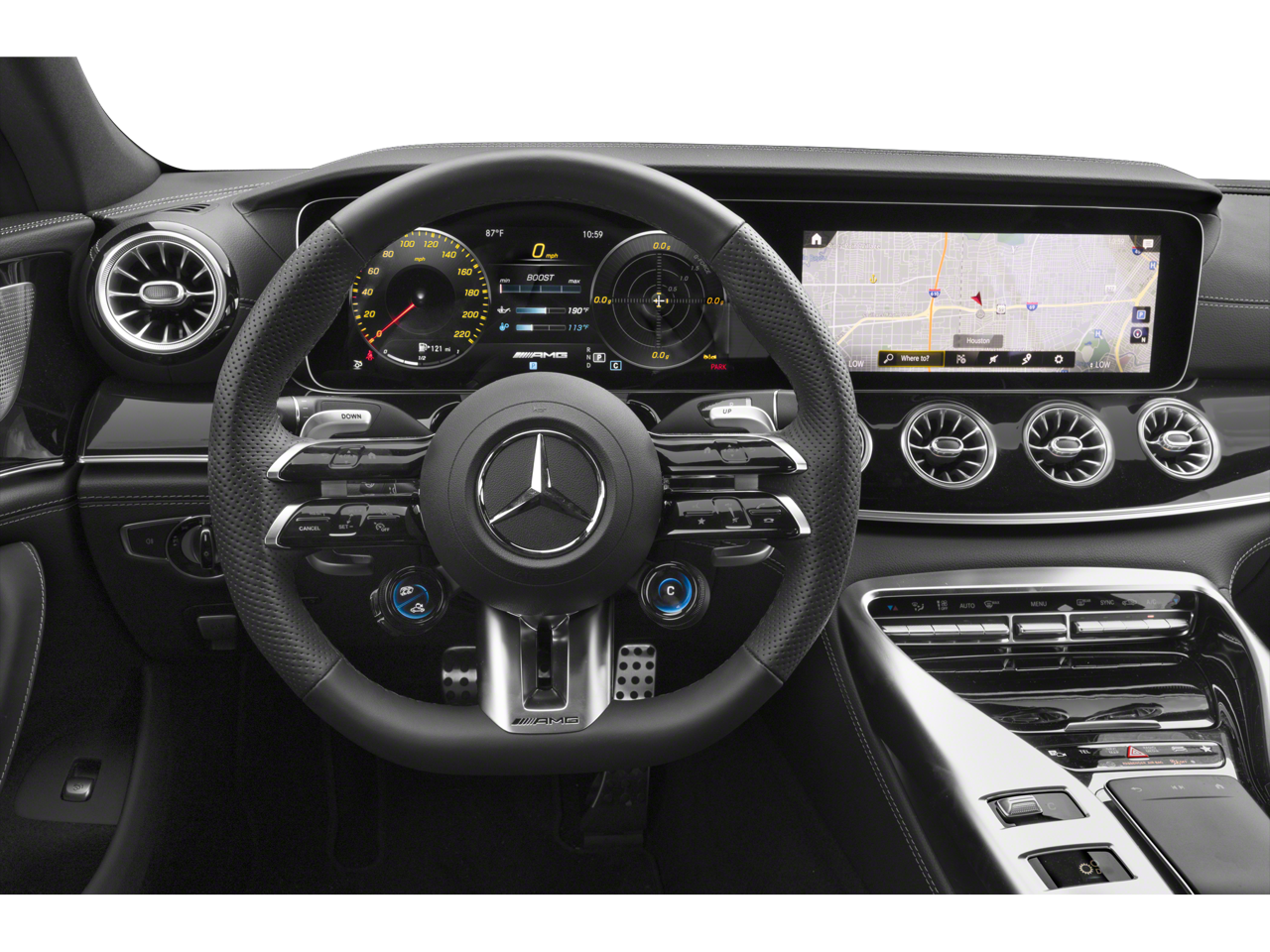 - AMG Performance Sport Heated Leather/Metal-Look Steering Wheel w/Auto Tilt-Away