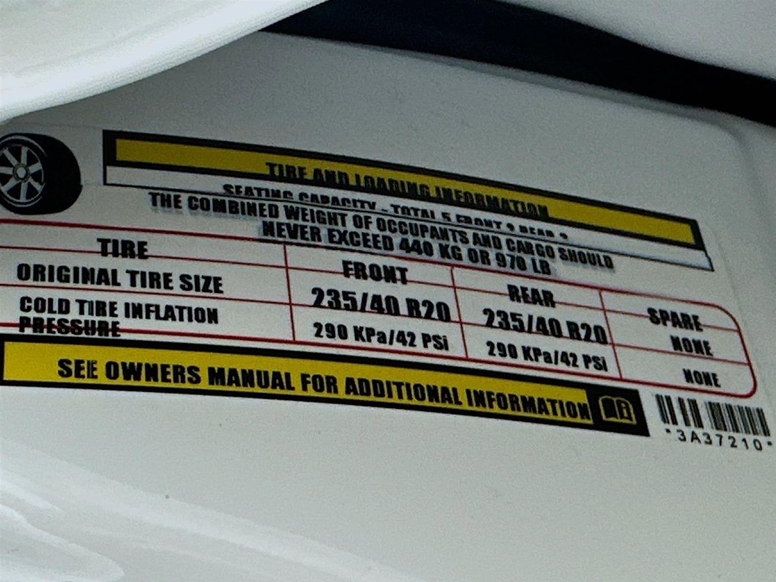 - Front Tire Size: P235/40YR20