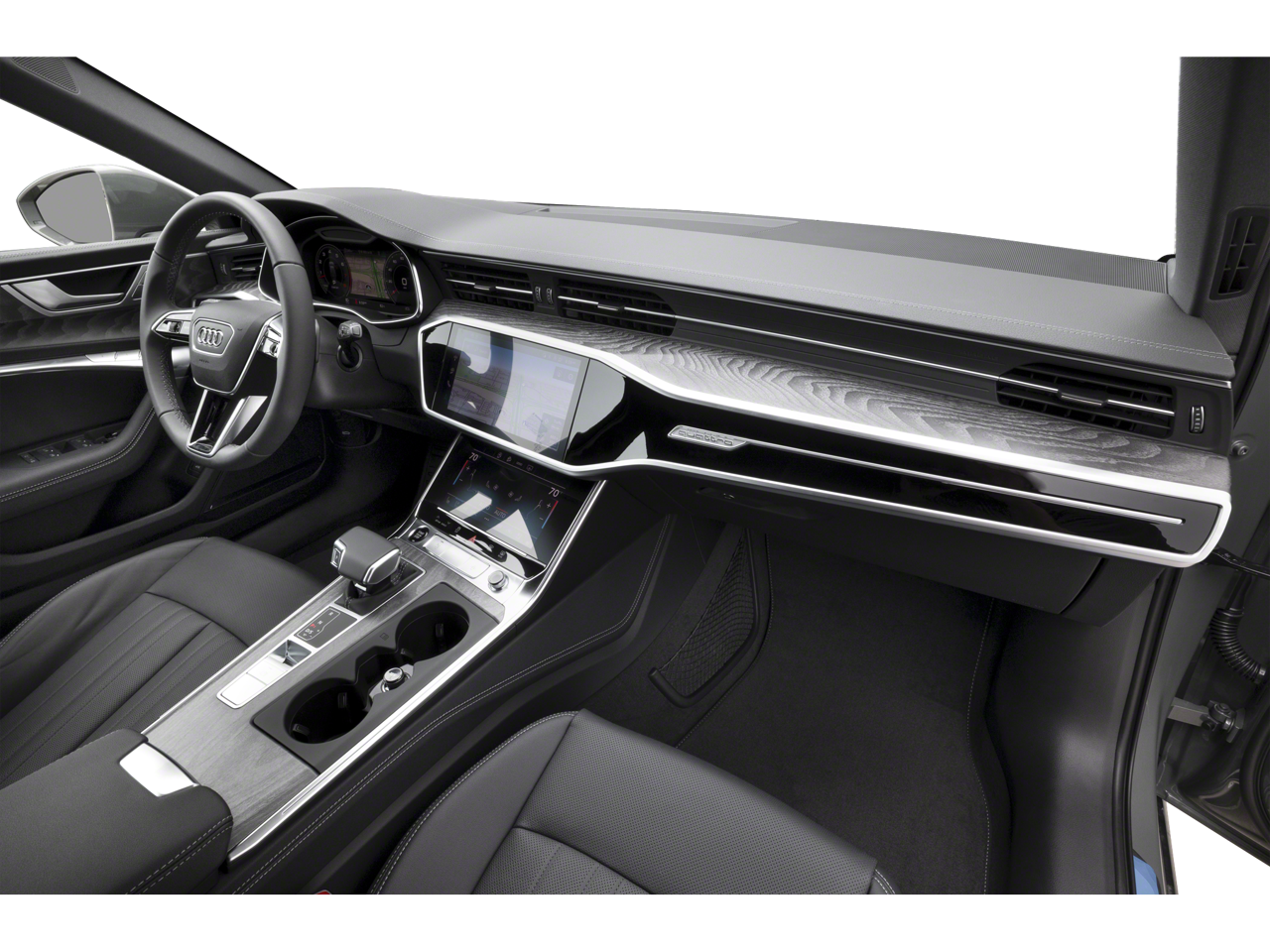 Adaptive Cruise Assist with Lane Guidance, Audi Side Assist with Pre Sense Rear, Bang & Olufsen Premium Sound System with 3D Sound, Black Exterior Trim, Black Optic Package, Black Roof Rails, Driver Assistance Package, Manhattan Gray Contrast Paint, Navigation system: Audi MMI Navigation plus with Touch Response, 16 Speakers, 4-Wheel Disc Brakes, ABS brakes, Adaptive suspension, Air Conditioning, All-Weather Floor Mats, Alloy wheels, AM/FM radio: SiriusXM w/360L, Auto High-beam Headlights, Auto tilt-away steering wheel, Auto-dimming door mirrors, Auto-dimming Rear-View mirror, Auto-leveling suspension, Automatic temperature control, Brake assist, Bumpers: body-color, Cargo Mat, Compass, Delay-off headlights, Driver door bin, Driver vanity mirror, Dual front impact airbags, Dual front side impact airbags, Electronic Stability Control, Emergency communication system: Audi connect CARE (limited time subscription - acceptance of terms required), Exterior Parking Camera Rear, Four wheel independent suspension, Front anti-roll bar, Front Bucket Seats, Front Center Armrest, Front dual zone A/C, Front fog lights, Front reading lights, Garage door transmitter: HomeLink, Genuine wood console insert, Genuine wood dashboard insert, Genuine wood door panel insert, Headlight cleaning, Heated and Ventilated Front Seats, Heated door mirrors, Heated front seats, Heated rear seats, Heated steering wheel, Illuminated entry, Knee airbag, Leather Seating Surfaces, Leather Shift Knob, Leather steering wheel, Low tire pressure warning, Memory seat, Occupant sensing airbag, Outside temperature display, Overhead airbag, Overhead console, Panic alarm, Passenger door bin, Passenger vanity mirror, Power door mirrors, Power driver seat, Power Liftgate, Power moonroof, Power passenger seat, Power steering, Power windows, Radio data system, Radio: Audi MMI Navigation Plus with MMI Touch Response, Rain sensing wipers, Rear air conditioning, Rear anti-roll bar, Rear dual zone A/C, Rear reading lights, Rear seat center armrest, Rear side impact airbag, Rear window defroster, Rear window wiper, Remote keyless entry, Security system, Speed control, Speed-sensing steering, Speed-Sensitive Wipers, Split folding rear seat, Spoiler, Steering wheel memory, Steering wheel mounted audio controls, Tachometer, Telescoping steering wheel, Tilt steering wheel, Traction control, Trip computer, Turn signal indicator mirrors, Variably intermittent wipers, Ventilated front seats, Wheels: 20" Platinum Gray Finish 10-V-Spoke Design, Adaptive Cruise Assist with Lane Guidance, Audi Side Assist with Pre Sense Rear, Bang & Olufsen Premium Sound System with 3D Sound, Black Exterior Trim, Black Optic Package, Black Roof Rails, Driver Assistance Package, Manhattan Gray Contrast Paint, Navigation system: Audi MMI Navigation plus with Touch Response.