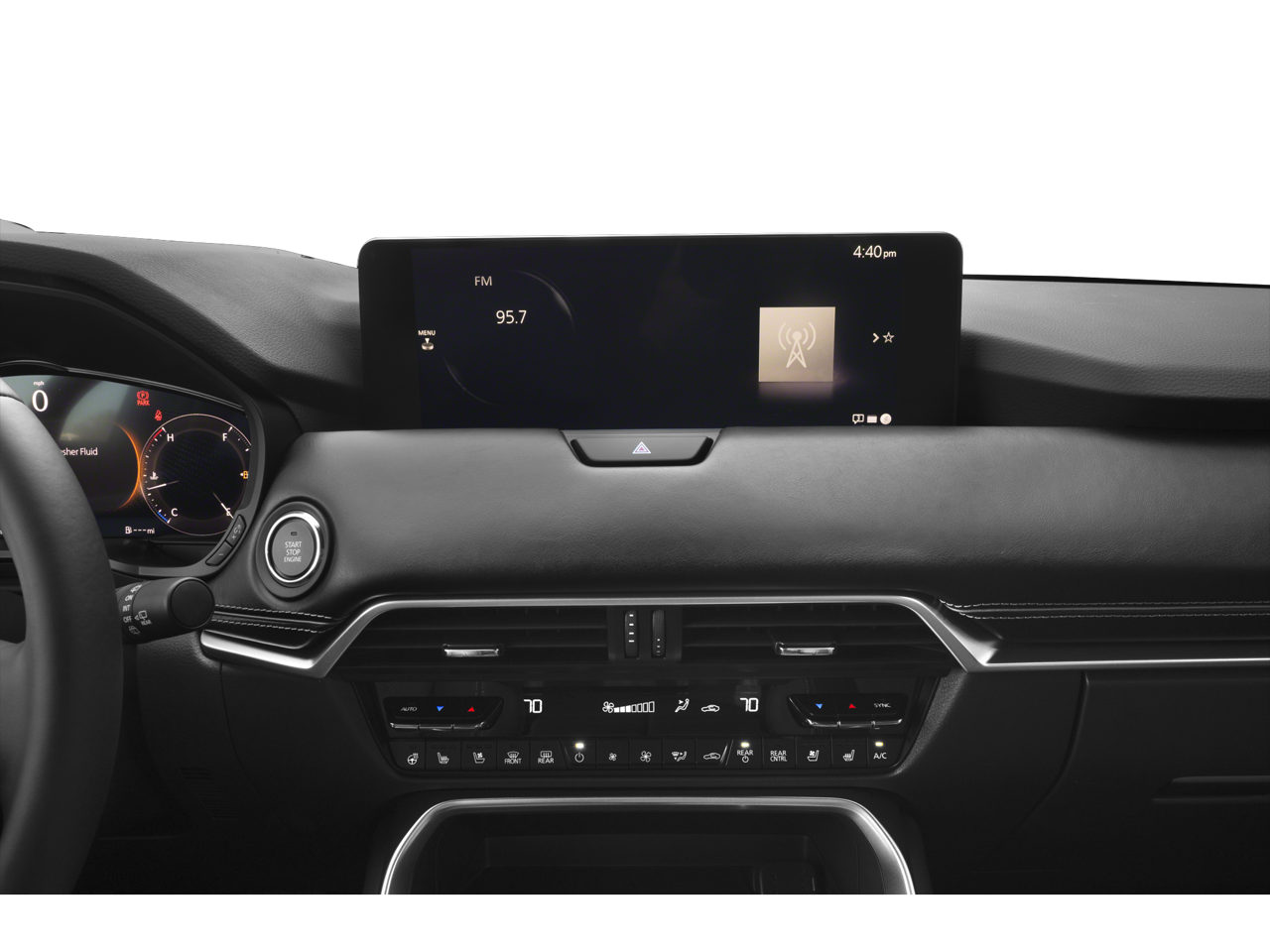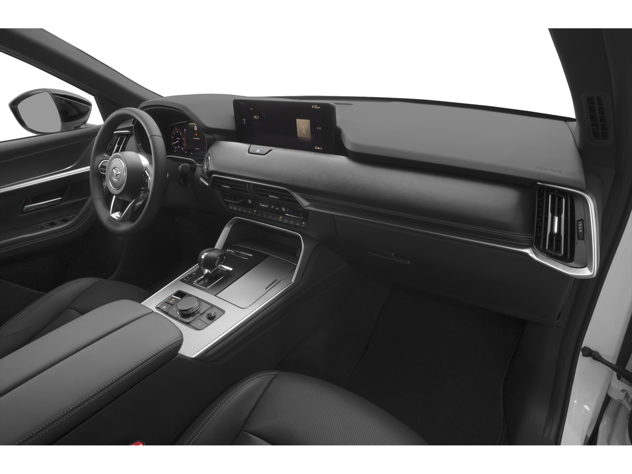 12 Speakers, 4-Wheel Disc Brakes, ABS brakes, Air Conditioning, All Weather Floor Mats, Alloy wheels, AM/FM radio: SiriusXM, Auto High-beam Headlights, Auto-dimming door mirrors, Auto-dimming Rear-View mirror, Automatic temperature control, Brake assist, Bumpers: body-color, Compass, Delay-off headlights, Driver door bin, Driver vanity mirror, Dual front impact airbags, Dual front side impact airbags, E911 Automatic Emergency Notification, Electronic Stability Control, Emergency communication system: MAZDA CONNECT, Four wheel independent suspension, Front anti-roll bar, Front Bucket Seats, Front Center Armrest w/Storage, Front dual zone A/C, Front reading lights, Fully automatic headlights, Garage door transmitter: HomeLink, Heads-Up Display, Heated door mirrors, Heated front seats, Heated rear seats, Heated steering wheel, Heated/Ventilated Front Bucket Seats, Illuminated entry, Infotainment System Voice Command, Knee airbag, Leather Shift Knob, Leather steering wheel, Low tire pressure warning, Mazda Connected Services, Mazda Online Navigation, Memory seat, Nappa Leather Seat Trim, Navigation system: MAZDA CONNECT, Occupant sensing airbag, Outside temperature display, Overhead airbag, Overhead console, Panic alarm, Passenger door bin, Passenger vanity mirror, Power door mirrors, Power driver seat, Power Liftgate, Power moonroof, Power passenger seat, Power steering, Power windows, Radio Broadcast Data System Program Information, Radio data system, Radio: AM/FM with Bose Premium Audio Sound System, Rain sensing wipers, Rear air conditioning, Rear anti-roll bar, Rear reading lights, Rear seat center armrest, Rear window defroster, Rear window wiper, Remote keyless entry, Security system, SMS Text Message Audio Delivery and Reply, Speed control, Speed-sensing steering, Splash Guards, Split folding rear seat, Spoiler, Steering wheel mounted audio controls, Tachometer, Telescoping steering wheel, Tilt steering wheel, Traction control, Trip computer, Variably intermittent wipers, Ventilated front seats, Wheels: 21" x 9.5J Aluminum Alloy.